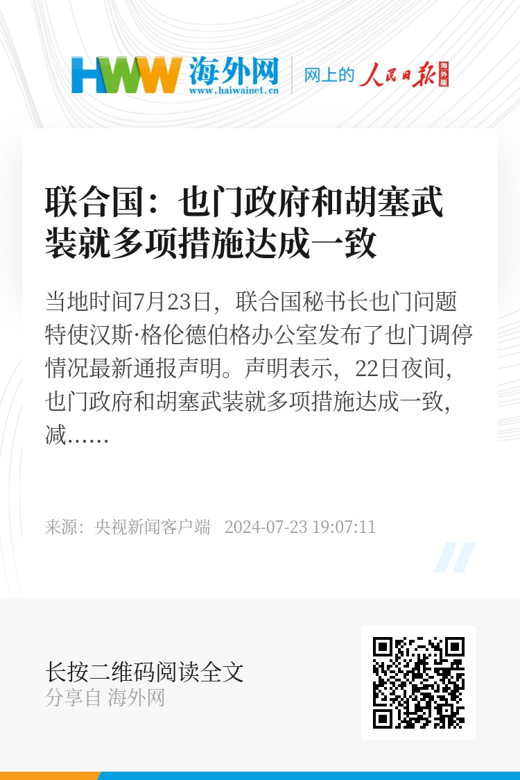 当地时间7月23日,联合国秘书长也门问题特使汉斯·格伦德伯格办公室发布了也门调停情况最新通报声明。