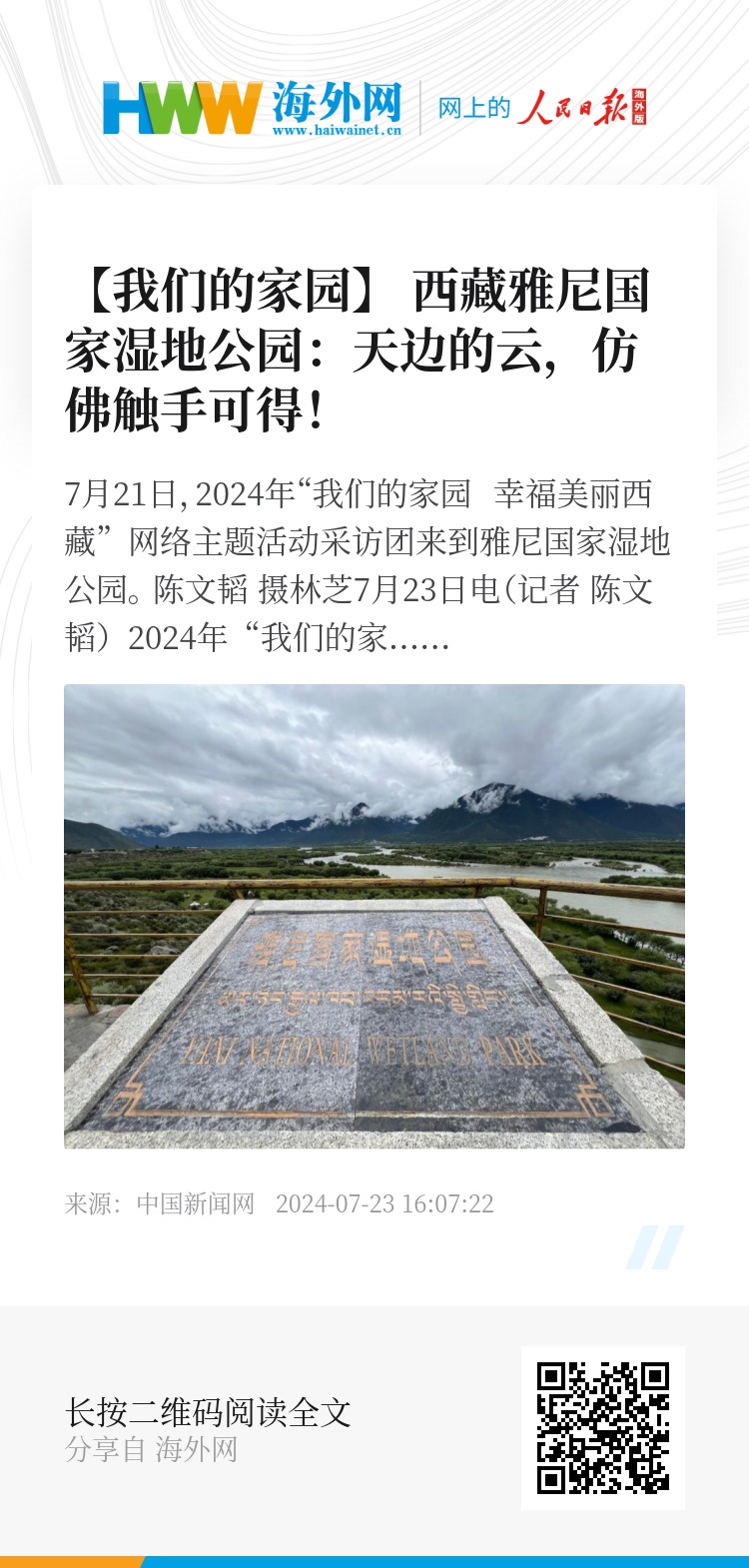 中新网林芝7月23日电(记者 陈文韬)2024年“我们的家园 幸福美丽西藏”网络主题活动20日在西藏自治区林芝市启动。21日,采访团来到位于雅鲁藏布江与尼洋河交汇处的雅尼国家湿地公园,感受无限自然风光。