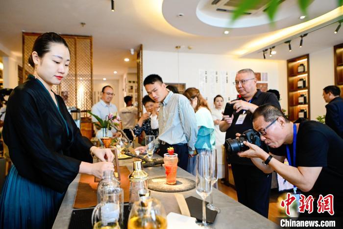 图为海外华文媒体代表体验新中式茶饮。中新网记者 李嘉娴 摄