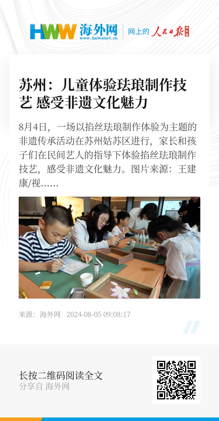 32777014,.苏州:儿童体验珐琅制作技艺 感受非遗文化魅力,.2024-08-05 09:51:17,.204372,.刘素素、夏丽娟