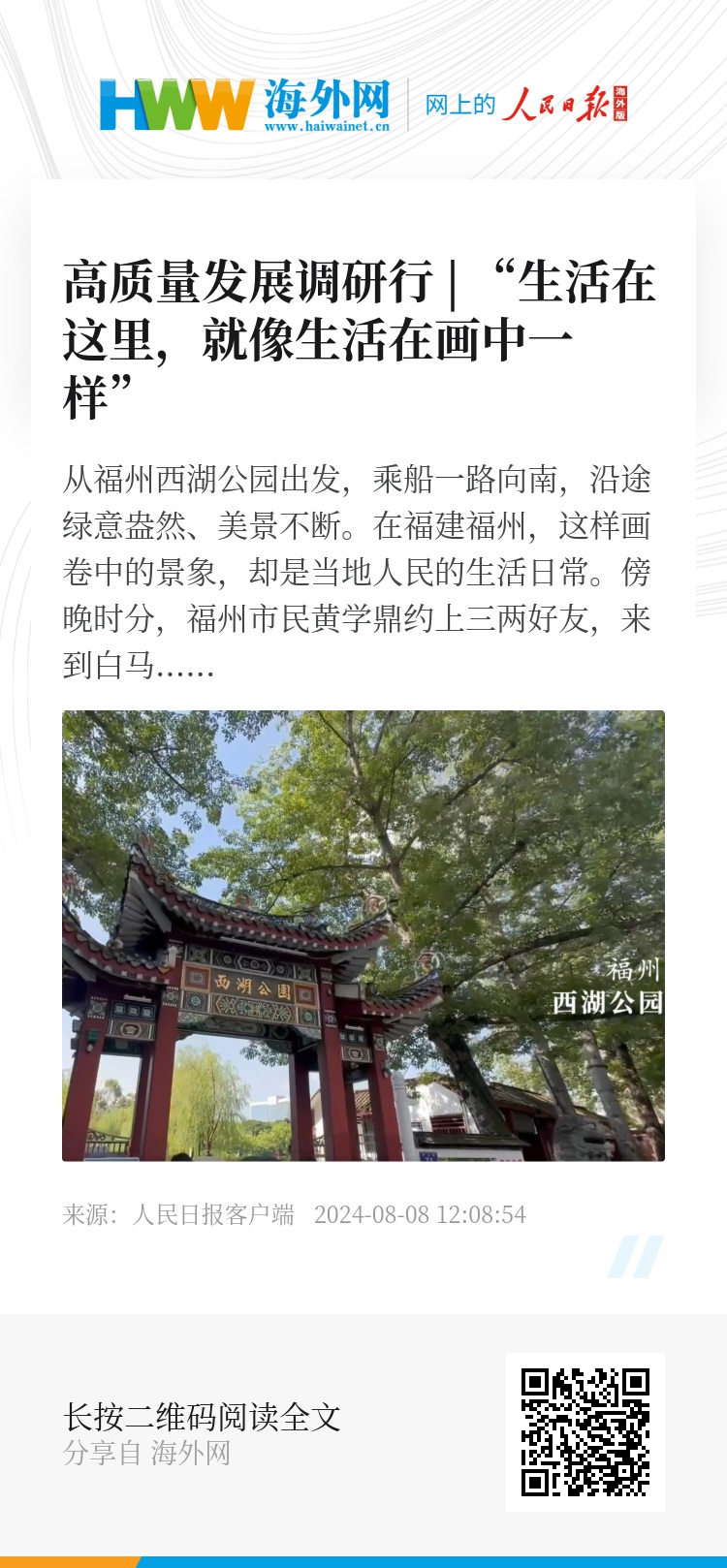 从福州西湖公园出发,乘船一路向南,沿途绿意盎然、美景不断。在福建福州,这样画卷中的景象,却是当地人民的生活日常。