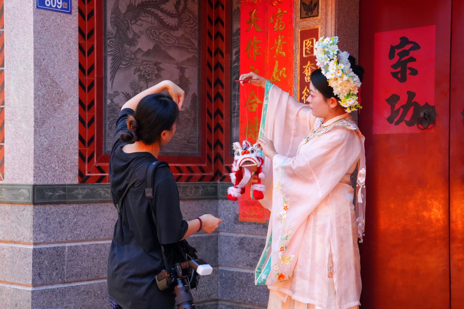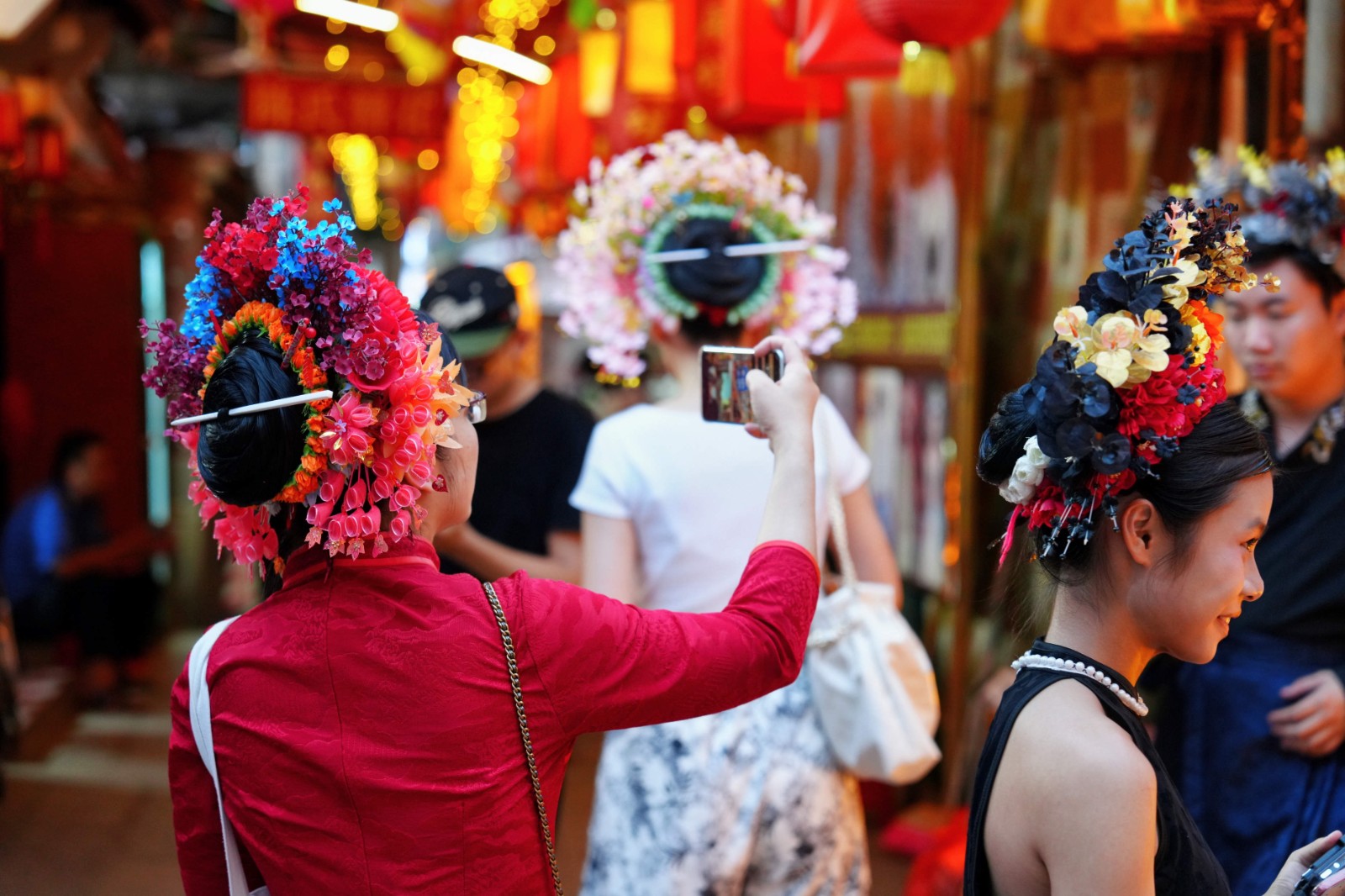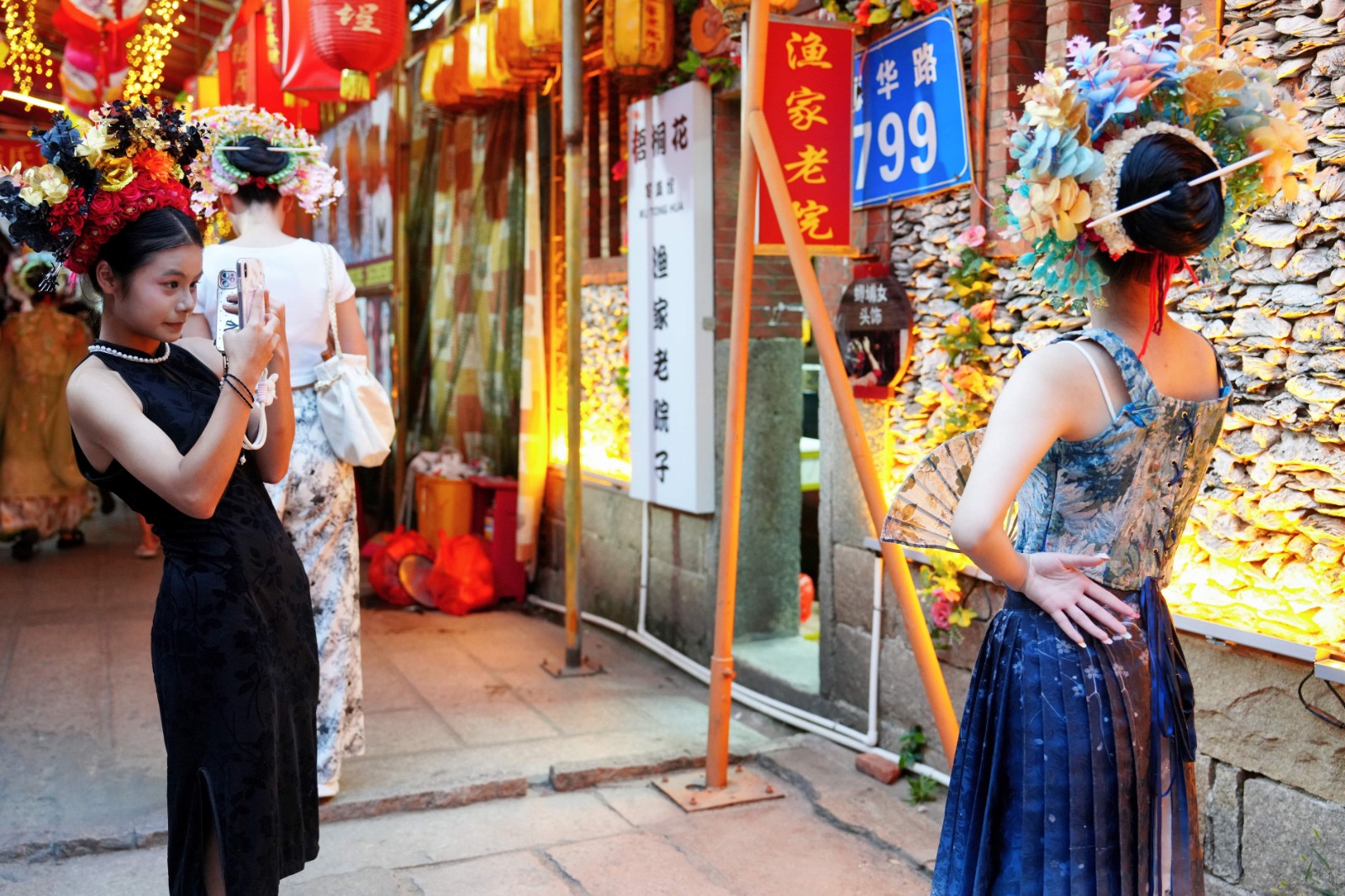 “蟳埔簪花围”成为网络热词,不少游客前来体验,带动当地摄影、美妆、花艺等业态发展。杨芝浩 摄
