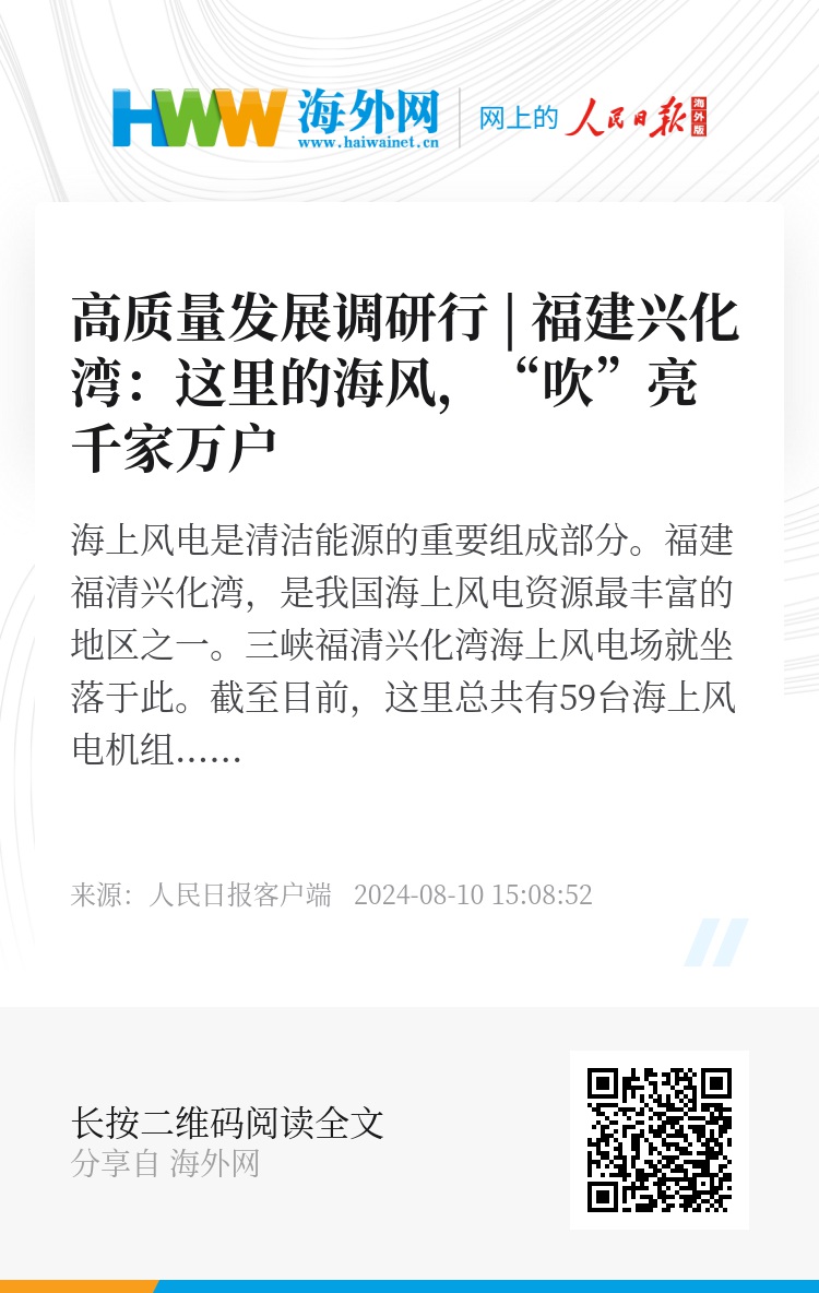 近年来,福建大力推动清洁能源和海上风电装配。截至2024年6月底,福建省海上风电并网装机规模达到372万千瓦,预计每年可替代标准煤400多万吨,减排二氧化碳超过1100万吨。(张意轩 余荣华 林渊 王崟欣)