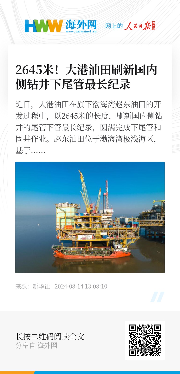 近日,大港油田在旗下渤海湾赵东油田的开发过程中,以2645米的长度,刷新国内侧钻井的尾管下管最长纪录,圆满完成下尾管和固井作业。