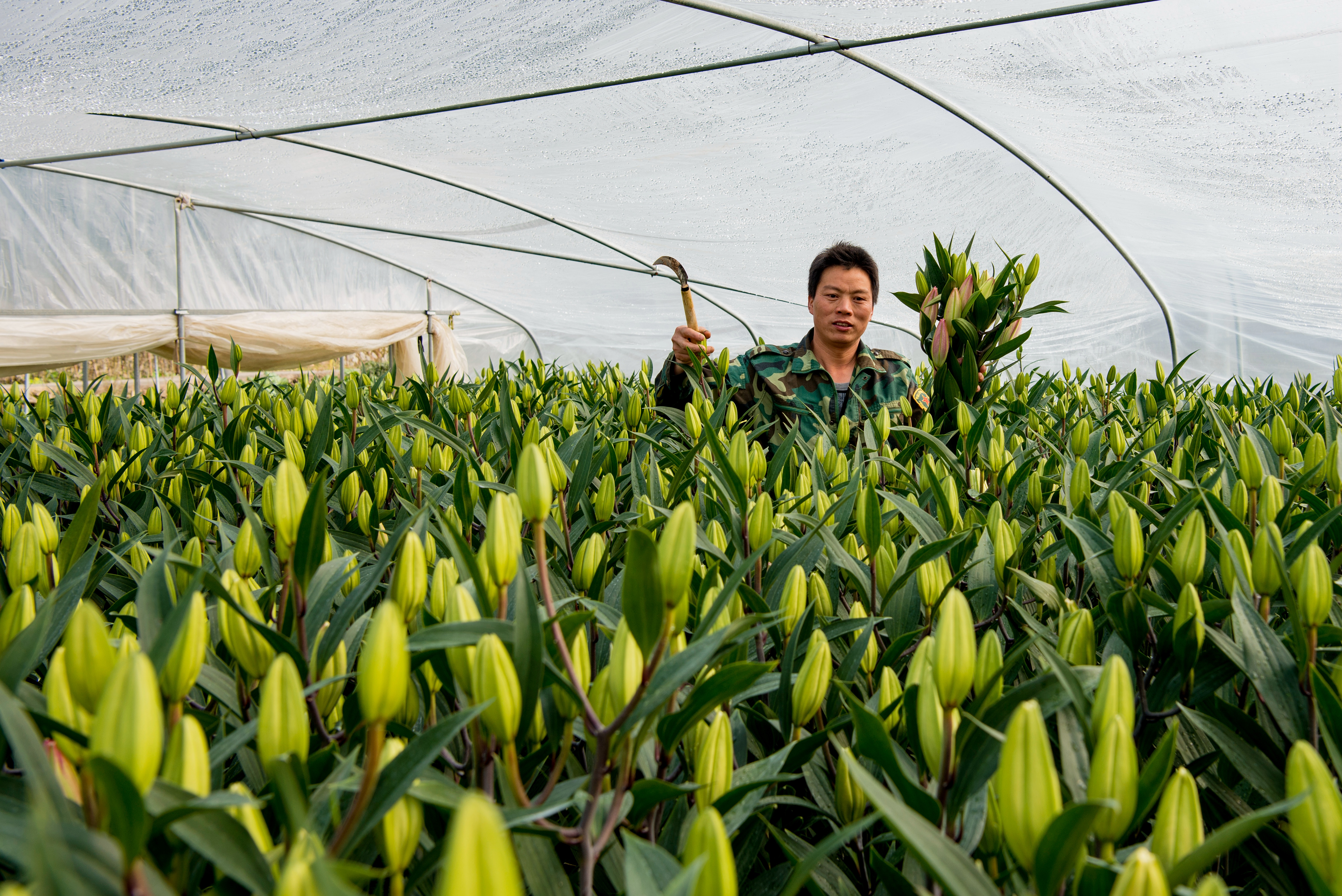 延平区百合花种植户在花棚里采收鲜切花。陈妹 摄