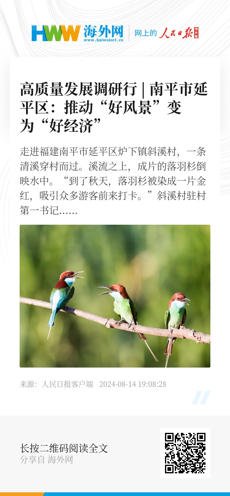 生态转变后,被誉为“中国最美小鸟”的蓝喉蜂虎也来到斜溪村。延平区委宣传部供图