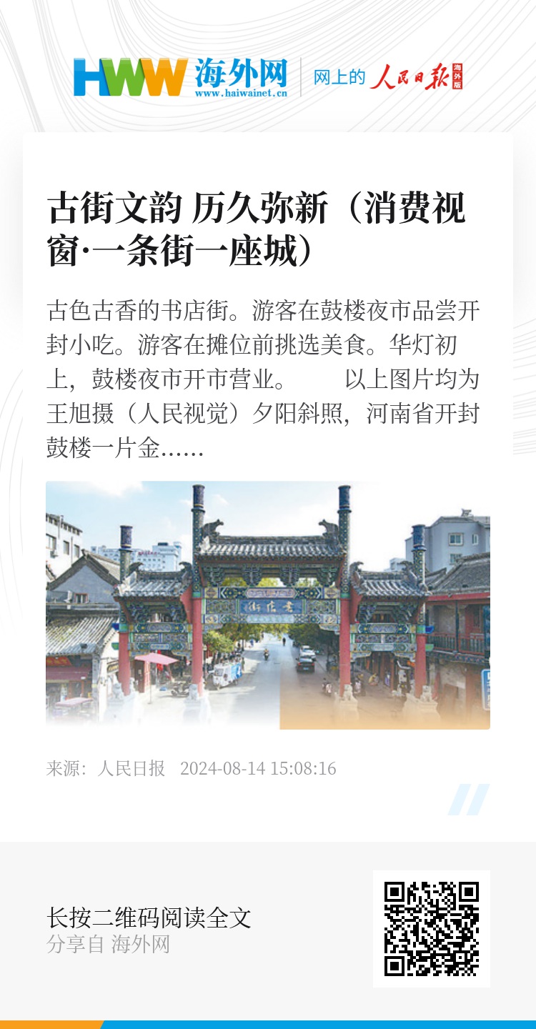 这是开封市鼓楼特色文化街区特有景观。南接鼓楼的书店街历经千年变迁,不断焕发出新的文化气息和消费活力。近日,记者走进书店街,一窥古都开封的文化韵味和文化活力。