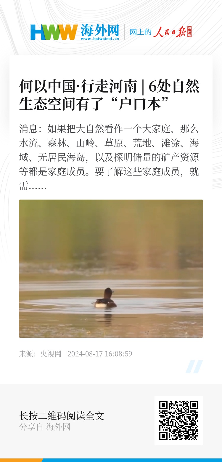 立秋前,它们已结束了2024年的孵化期。据监测,这里的青头潜鸭有309只,2024年又成功繁殖了两窝。据了解,除了民权黄河故道国家湿地公园,河南还有史灌河(河南段)、河南丹江湿地国家级自然保护区、卫河(河南段)、沙(颍)河、唐白河等5处自然生态空间,完成自然资源确权登记,资产所有权人为全民,履职主体为自然资源部,代理履职主体为河南省人民政府。
