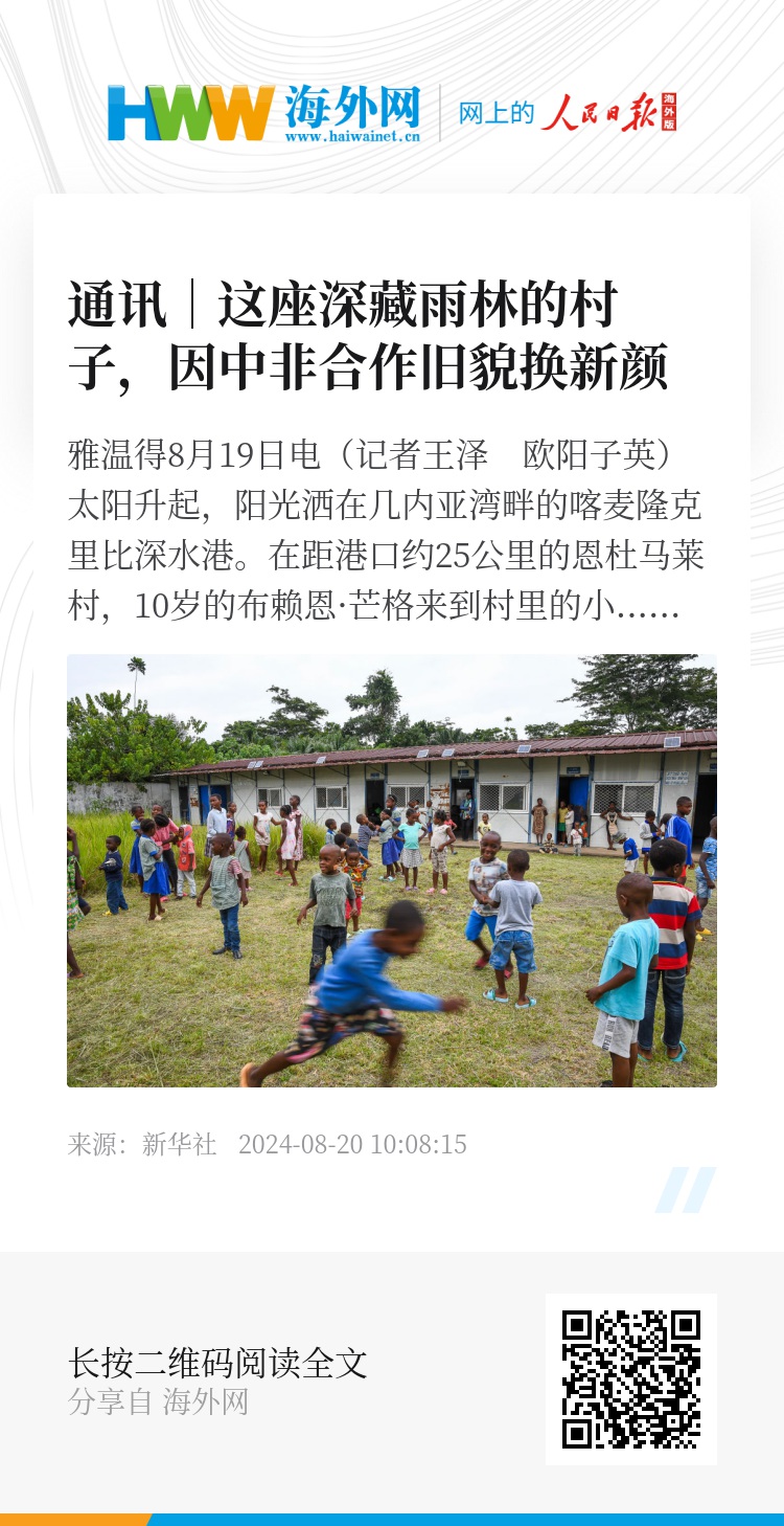 新华社雅温得8月19日电(记者王泽 欧阳子英)太阳升起,阳光洒在几内亚湾畔的喀麦隆克里比深水港。在距港口约25公里的恩杜马莱村,10岁的布赖恩·芒格来到村里的小学参加暑期课外活动。