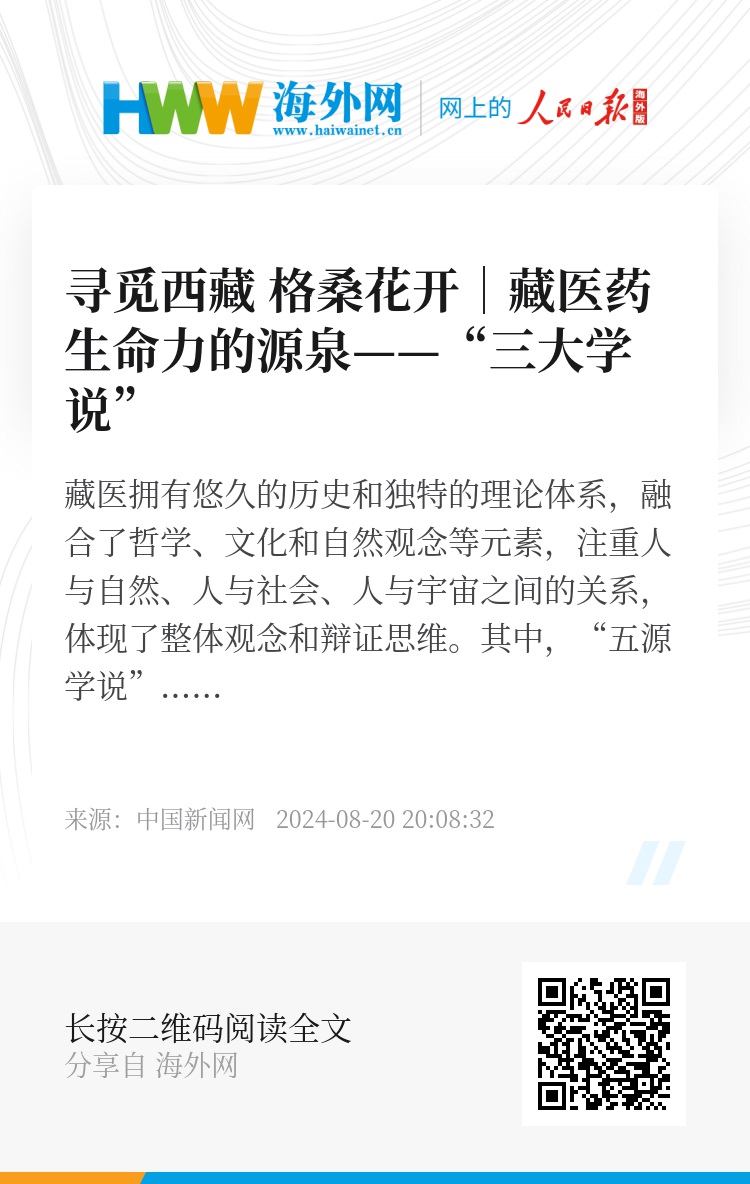 藏医拥有悠久的历史和独特的理论体系,融合了哲学、文化和自然观念等元素,注重人与自然、人与社会、人与宇宙之间的关系,体现了整体观念和辩证思维。其中,“五源学说”“三因学说”“寒热学说”构成了藏医学理论体系的核心内容,彼此之间相互关联、相互影响。
