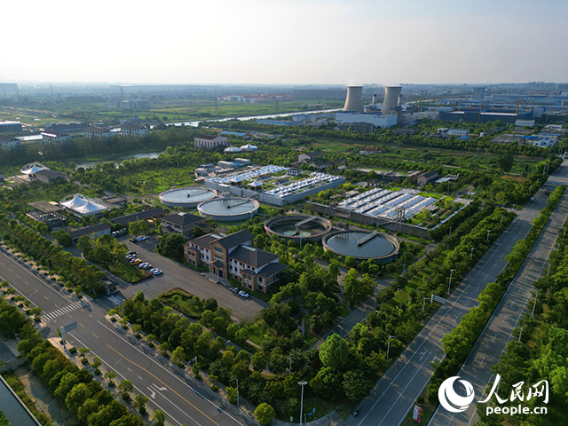 南通通州区益民水处理的花园式厂区。人民网记者 王继亮摄