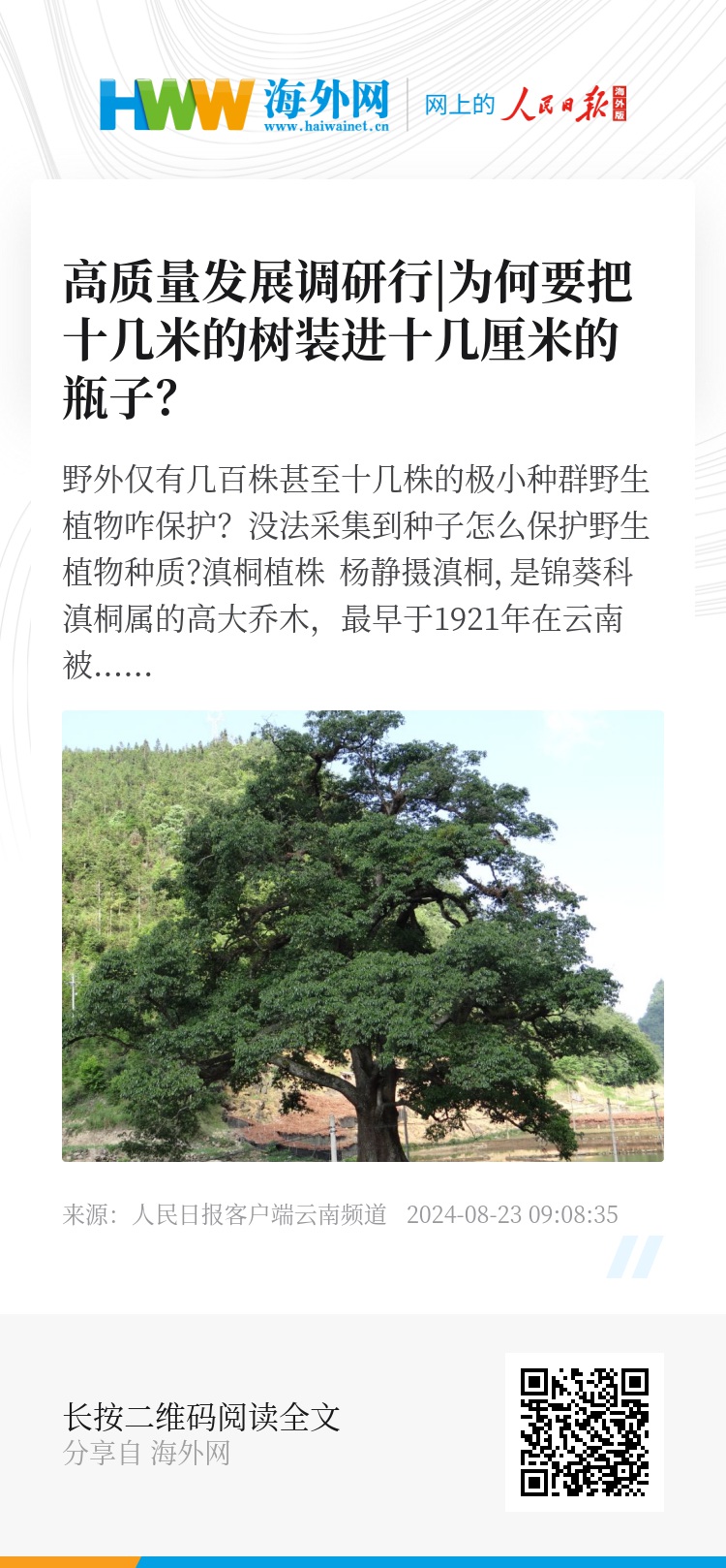 孤独的滇桐,成为了科学家探索滇桐属植物系统演化的关键钥匙,其价值无可估量。然而,野外数量的极度稀缺,让它的生存状况岌岌可危。