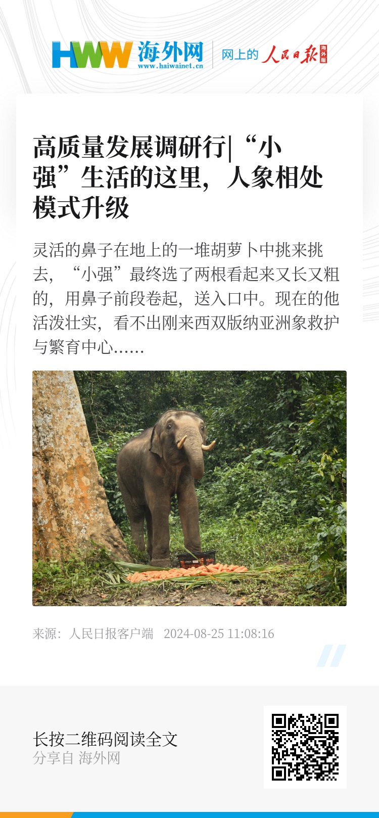 今年2月23日起,《亚洲象栖息地修复技术规程》等五项亚洲象地方标准正式施行,进一步探索我国野生亚洲象保护标准化道路。“我们希望更进一步,为亚洲象保护管理提供可借鉴的科学方法,助力生物多样性保护取得新进展。”陈飞说。(人民日报客户端云南频道徐红梅 董丝雨 张驰)