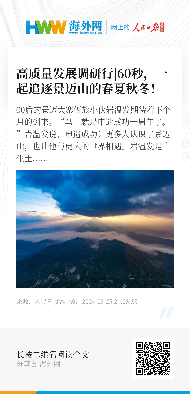 00后的景迈大寨佤族小伙岩温发期待着下个月的到来。“马上就是申遗成功一周年了。”岩温发说,申遗成功让更多人认识了景迈山,也让他与更大的世界相遇。