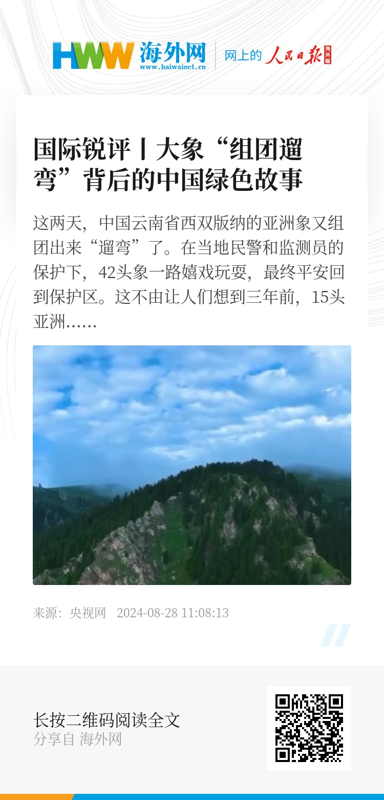 这是中国生态保护的一个缩影。位于中国西南边陲的云南省,是全球生物多样性最丰富的地区之一。会长翅膀的种子、会流泪的树、有糯米味道的叶子……《国际锐评》评论员近日走访云南期间,发现了一个个向“绿”而行的故事。