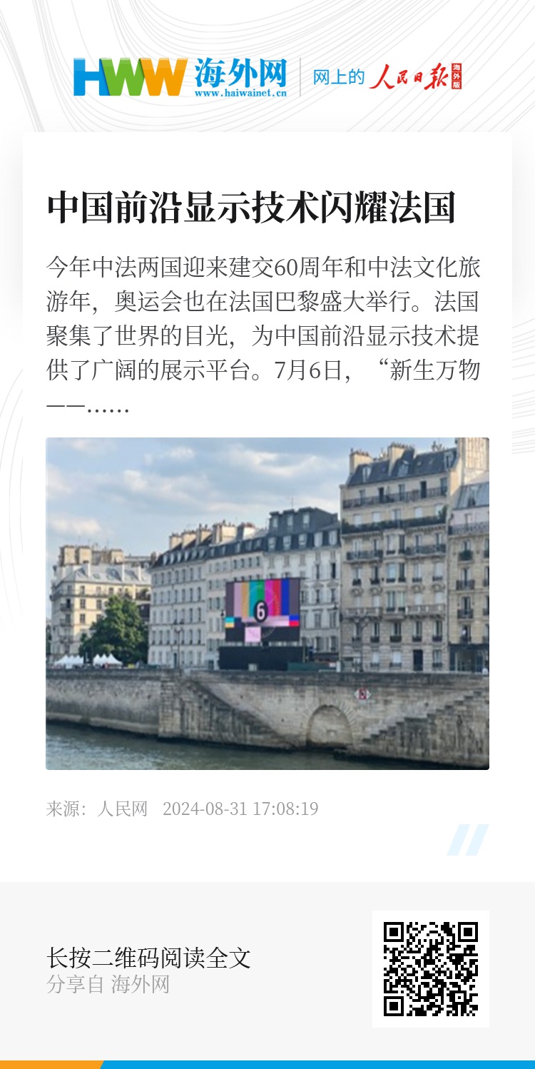 今年中法两国迎来建交60周年和中法文化旅游年,奥运会也在法国巴黎盛大举行。法国聚集了世界的目光,为中国前沿显示技术提供了广阔的展示平台。