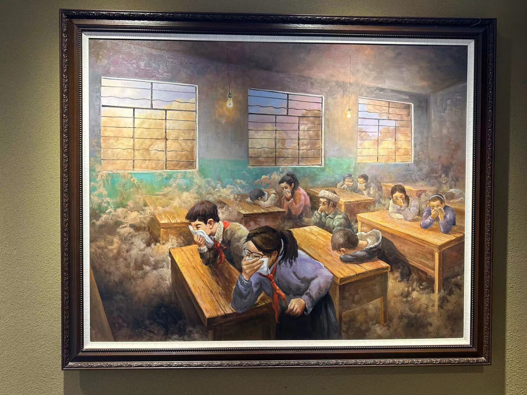 展览馆内,展示过去沙珠玉风沙危害的油画作品 摄影 石丽敏