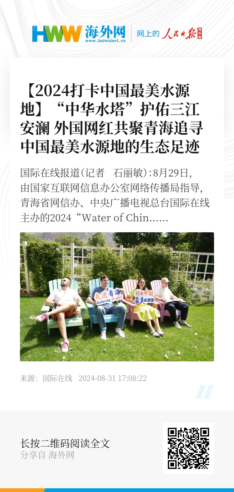 国际在线报道(记者 石丽敏):8月29日,由国家互联网信息办公室网络传播局指导,青海省网信办、中央广播电视总台国际在线主办的2024“Water of China!打卡中国最美水源地——走进青海”网络国际传播活动圆满落幕。