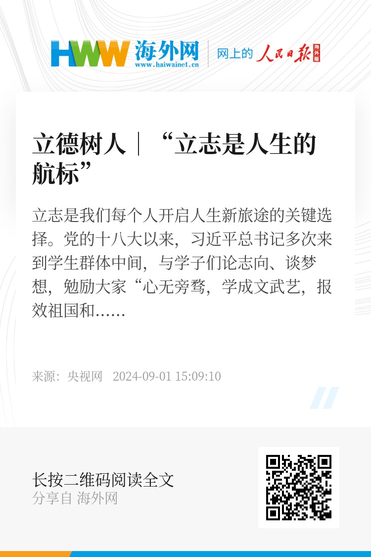 “立志而圣则圣矣,立志而贤则贤矣。”面向未来,中国特色社会主义事业需要一代又一代有志青少年接续奋斗。正如总书记所说,“‘得其大者可以兼其小。’只有把人生理想融入国家和民族的事业中,才能最终成就一番事业”。