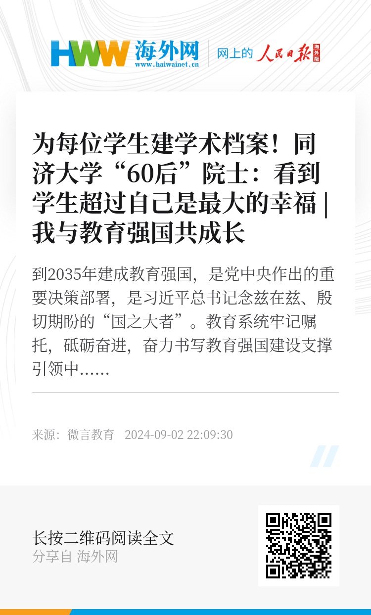 今天,“奋进在教育强国大路上——沿着总书记指引的方向砥砺前行”专栏之“我与教育强国共成长”系列,一起走近中国科学院院士、同济大学土木工程学院教授李杰讲述的故事——