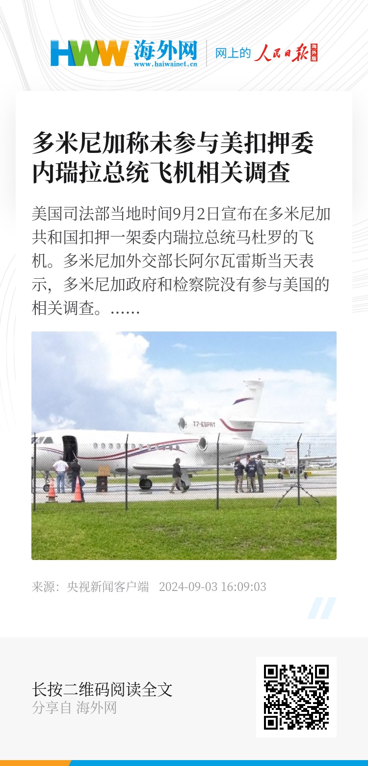 美国司法部当地时间9月2日宣布在多米尼加共和国扣押一架委内瑞拉总统马杜罗的飞机。
