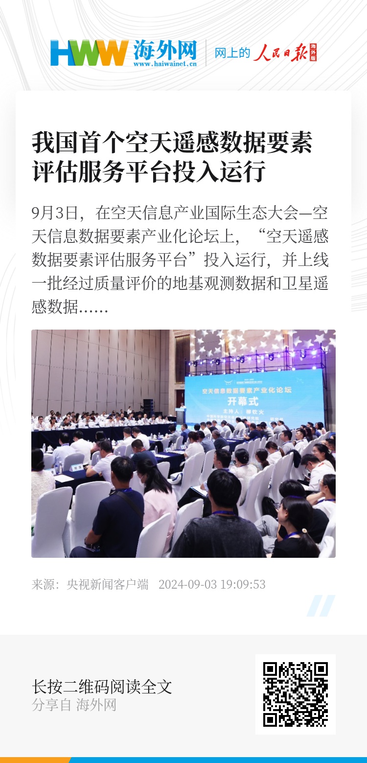 “空天遥感数据要素评估服务平台”是空天遥感数据要素流通基础底座,具有建设空天遥感数据资源汇聚、质量评价、价值评估、应用场景展现等重要功能,为未来形成“数据所有者-数据加工者-数据服务商-数据交易所-数据应用方”创新性的空天遥感数据要素服务奠定了重要基础,对我国空天遥感领域的发展具有重要作用。(总台央视记者 帅俊全 褚尔嘉)