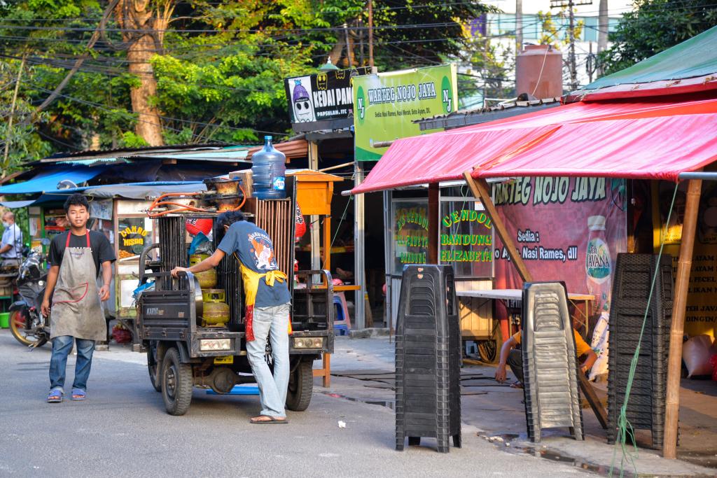 2022年8月1日,商贩在印度尼西亚首都雅加达街头搭建临时摊位。新华社记者徐钦摄