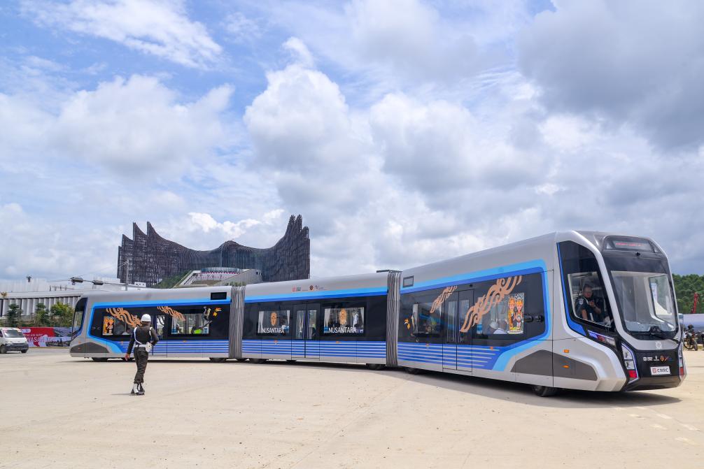 这是8月12日在印度尼西亚新首都努山塔拉拍摄的智轨系统。新华社记者徐钦摄