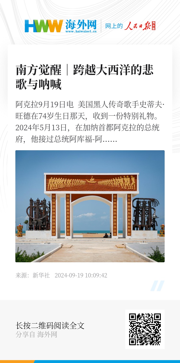 新华社阿克拉9月19日电 美国黑人传奇歌手史蒂夫·旺德在74岁生日那天,收到一份特别礼物。