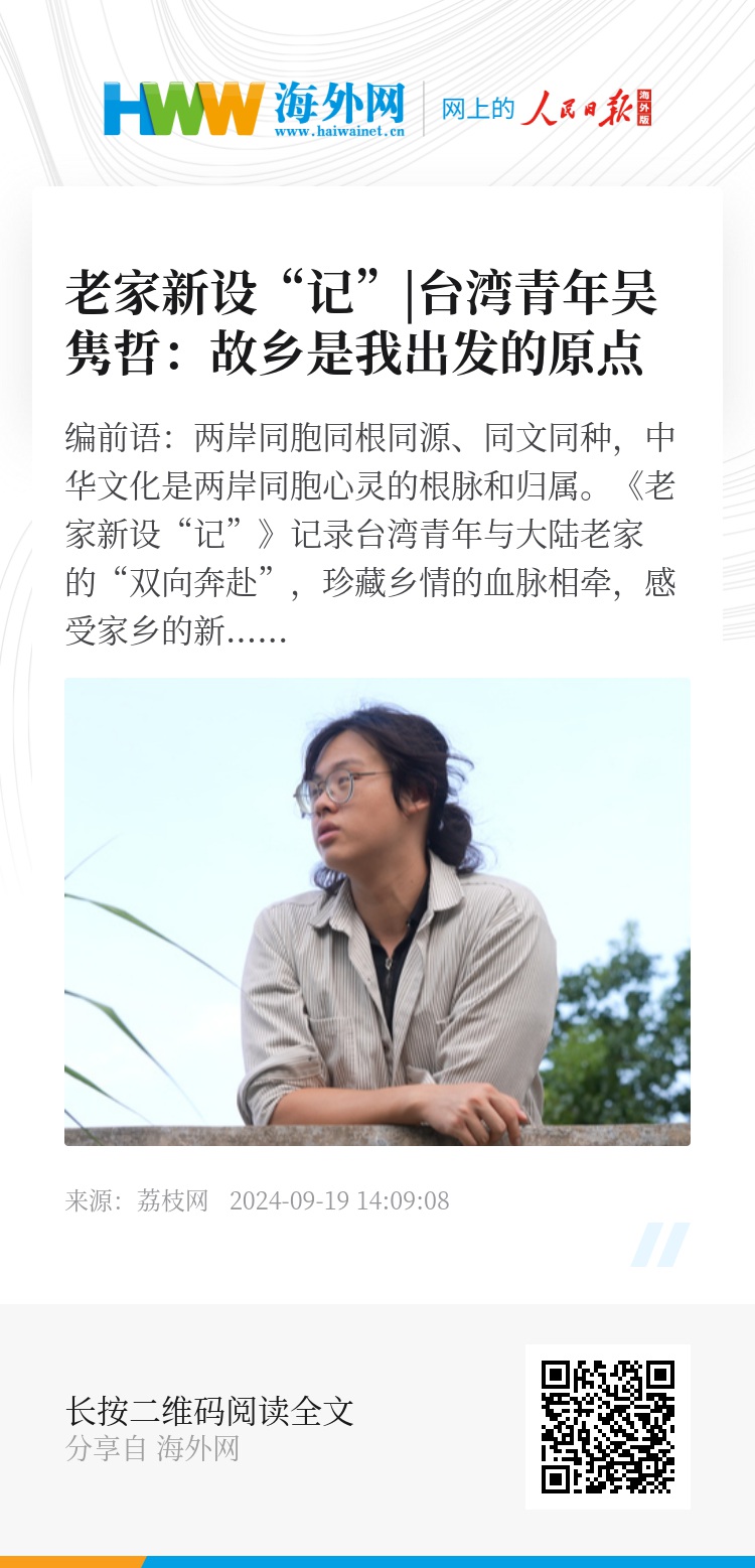 《老家新设“记”》记录台湾青年与大陆老家的“双向奔赴”,珍藏乡情的血脉相牵,感受家乡的新颜蝶变。以青春之名,跨越海峡,寻根、寻梦。