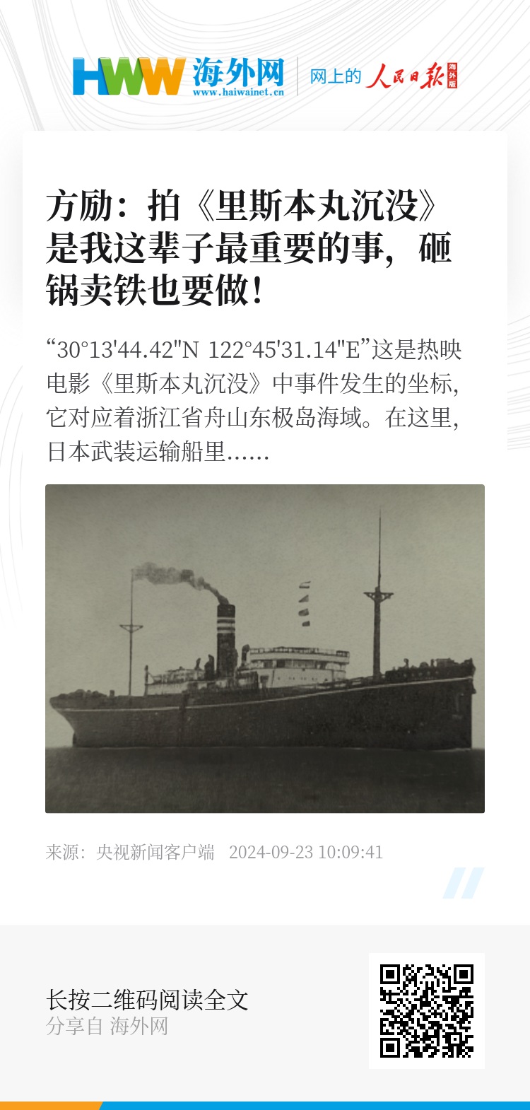 那么,里斯本丸上究竟发生了什么?埋藏于海底的真相如何被还原?导演方励接受央视新闻记者专访,与大家分享背后的故事。