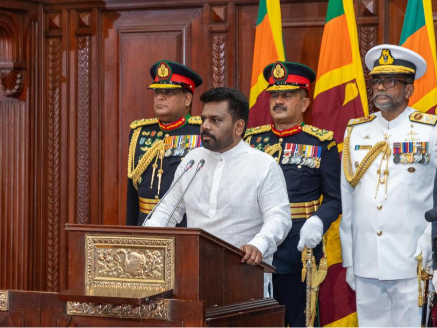 9月23日,迪萨纳亚克在科伦坡宣誓就任斯里兰卡总统。新华社发(斯里兰卡国家人民力量党供图)