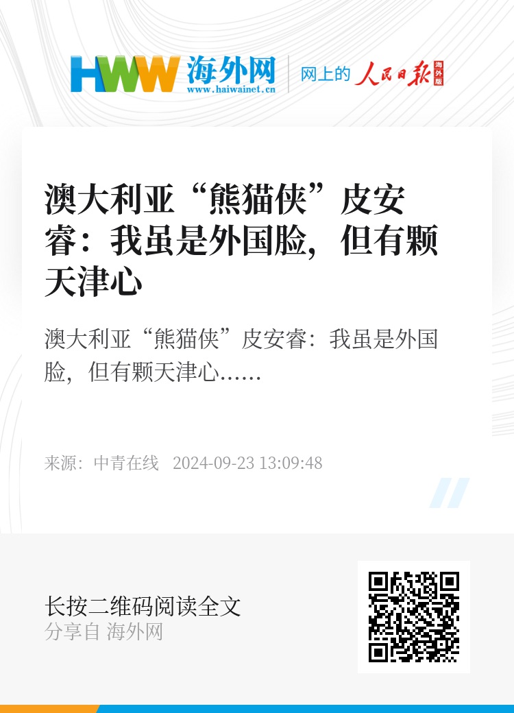 澳大利亚“熊猫侠”皮安睿:我虽是外国脸,但有颗天津心