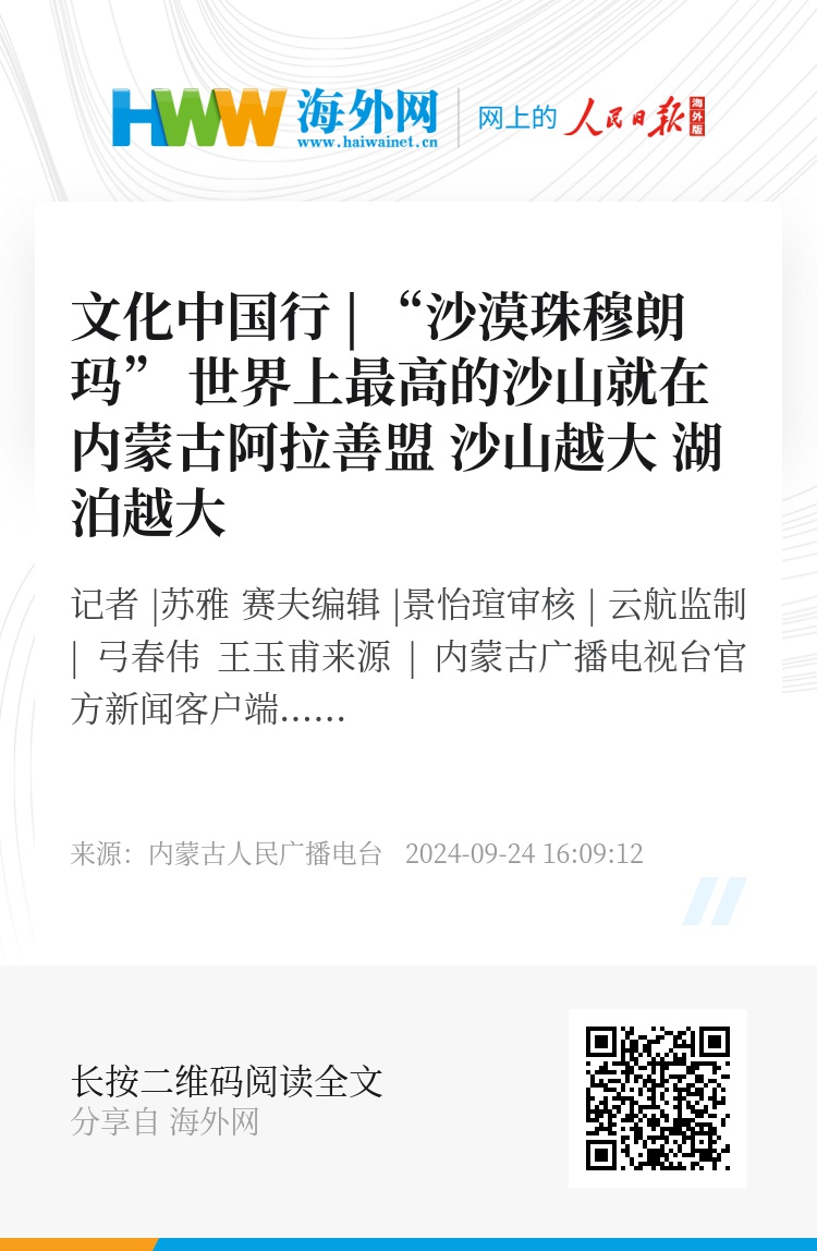 文化中国行 | “沙漠珠穆朗玛” 世界上最高的沙山就在内蒙古阿拉善盟 沙山越大 湖泊越大