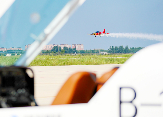 7月30日,在位于山东莱西市店埠镇的青岛莱西通航产业园,飞行员带领飞行爱好者体验驾驶轻型运动飞机。新华社发(张进刚摄)