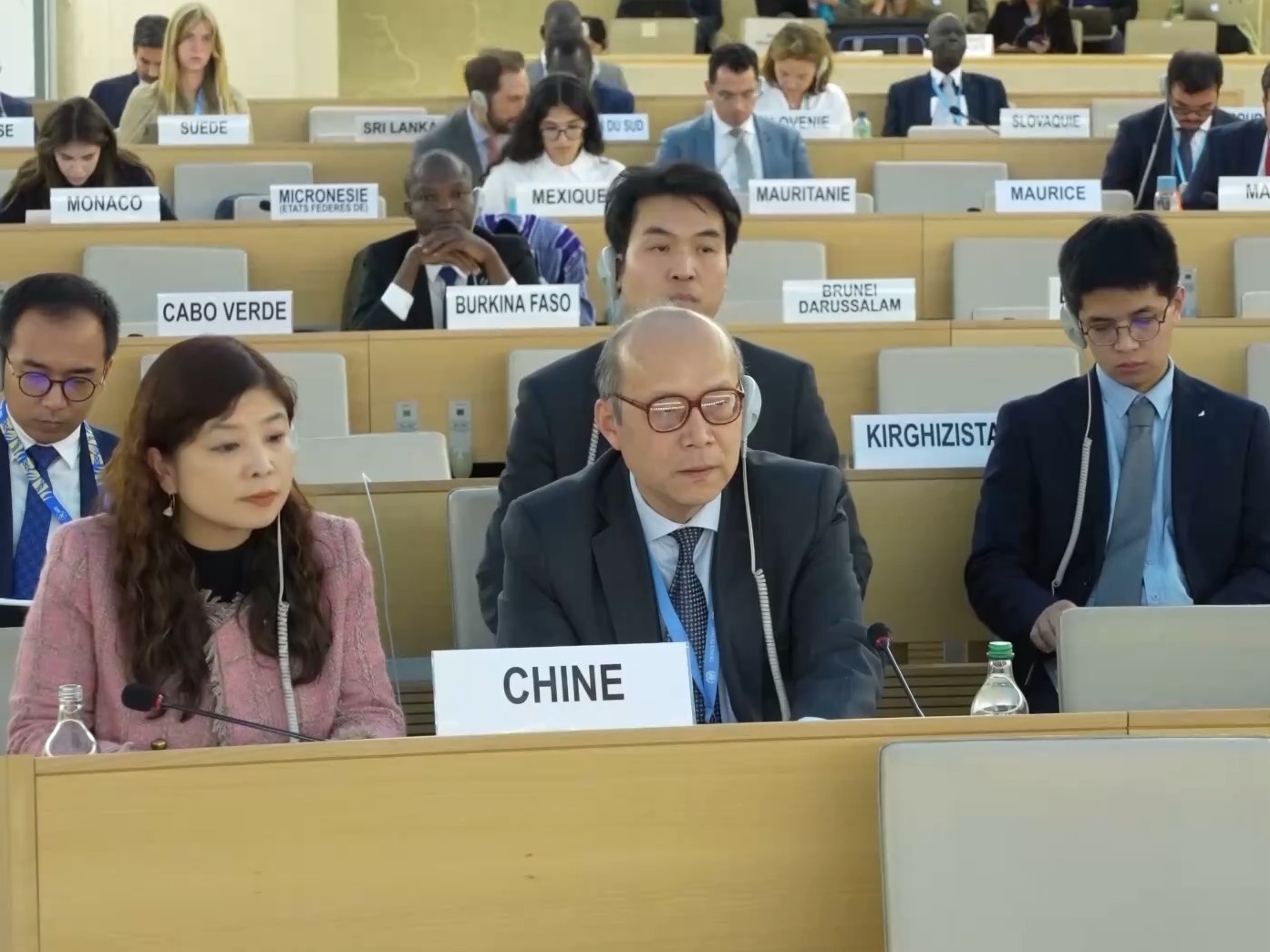 中国常驻联合国日内瓦办事处和瑞士其他国际组织代表陈旭代表“对话合作促人权之友小组”成员国作共同发言,指出当前人权理事会政治化和极化氛围加剧。人权理事会不是对抗施压的场所,应为各国通过对话交流积累信任、推进合作发挥应有作用。