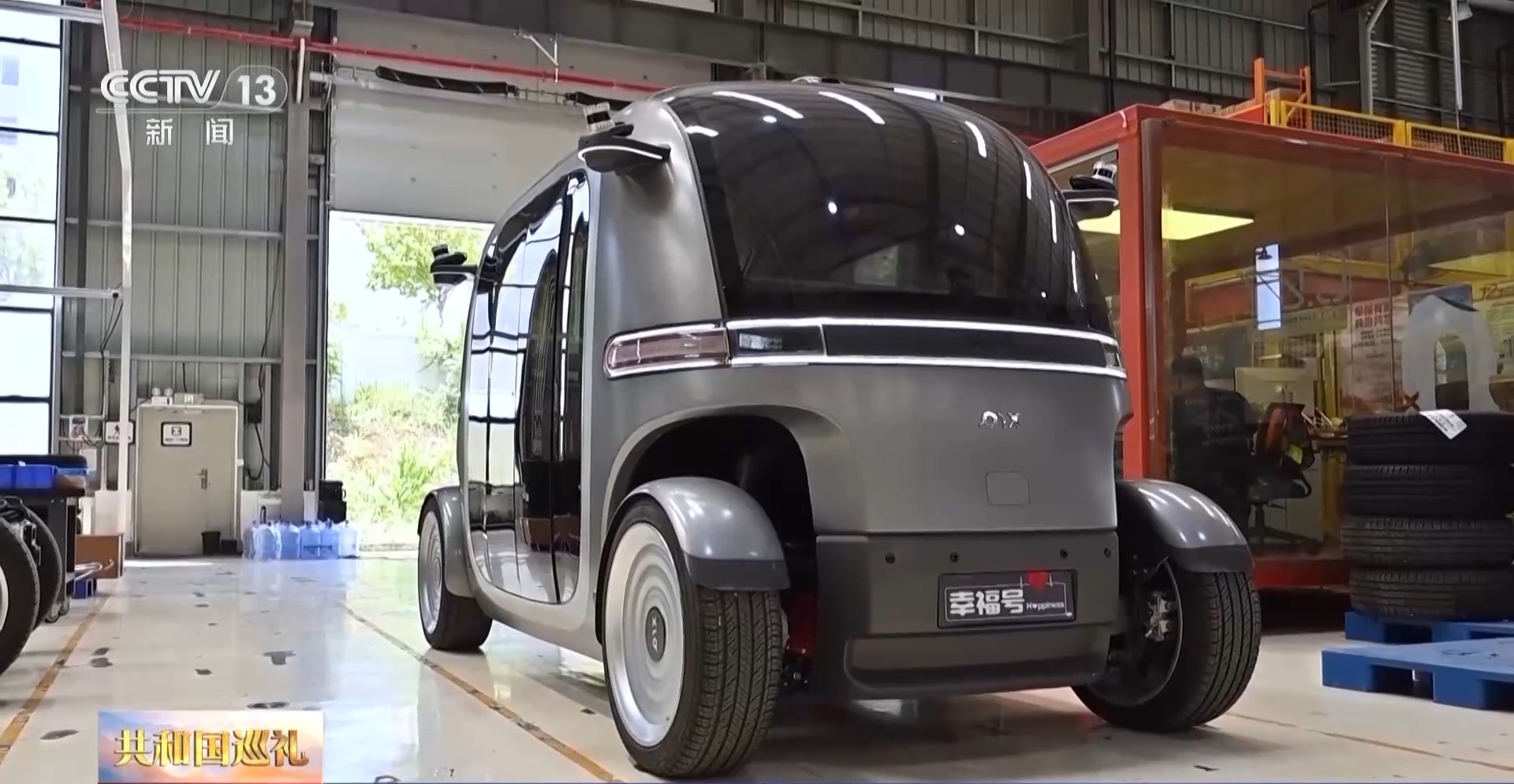 总台记者 田尹男:从蒸汽机车来到这辆科技感的小巴车,是不是有种穿越的感觉?这是由一家贵州本土的科技企业自主研发制造的无人驾驶小巴车,附近的生产线就是根据不同的客户需求,定制生产的尺寸不同的底盘。不论是底盘、外部构件还是内饰,都可以实现3D打印。