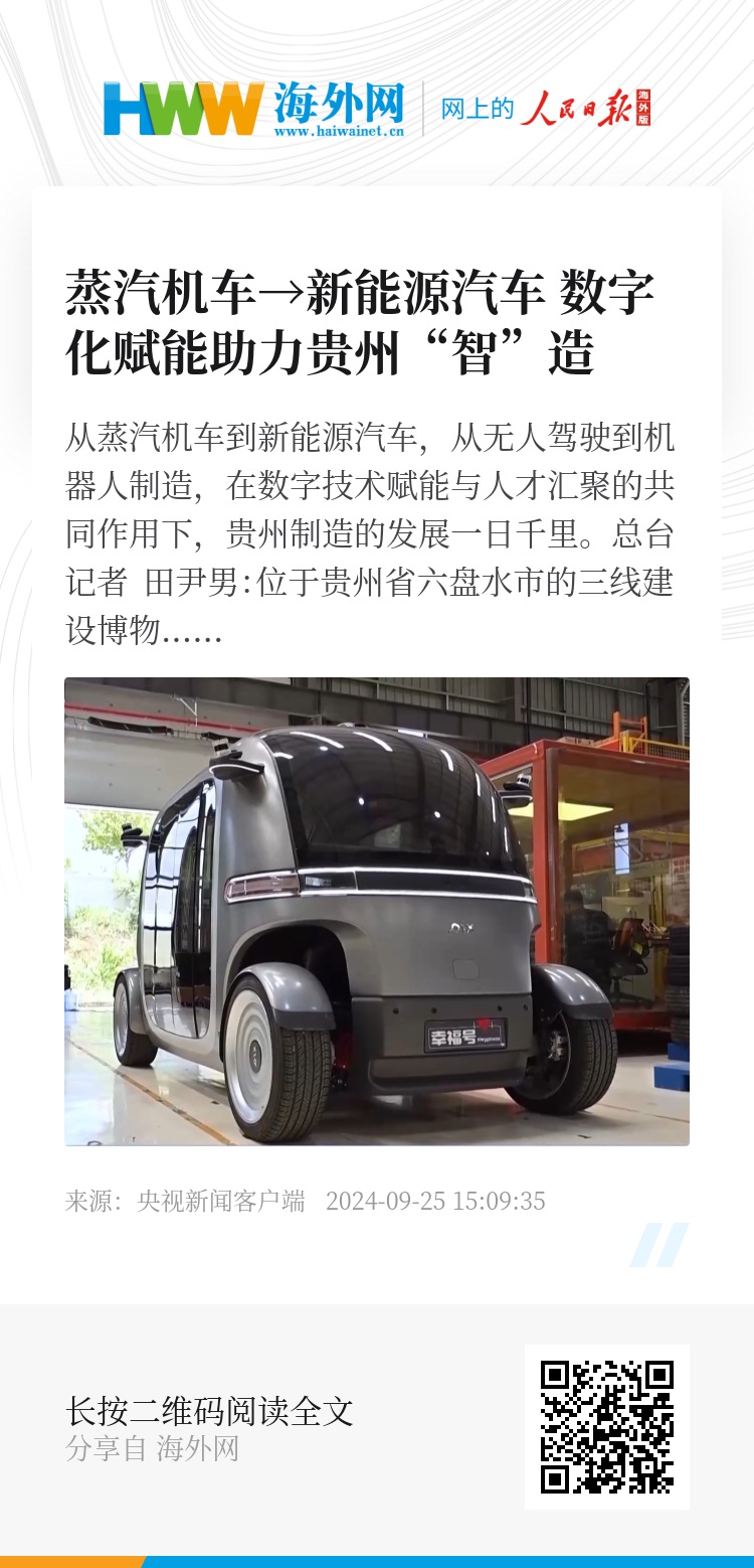 从蒸汽机车到新能源汽车,从无人驾驶到机器人制造,在数字技术赋能与人才汇聚的共同作用下,贵州制造的发展一日千里。