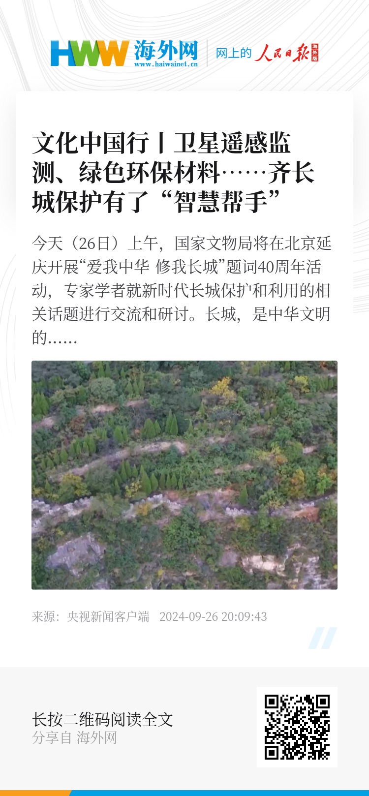 长城,是中华文明的精神标识。其中,齐长城是最古老的一段,始建于春秋时期。随着考古探源和保护修缮工作不断推动,新材料、新科技手段的运用,古老的齐长城正在焕发新生。
