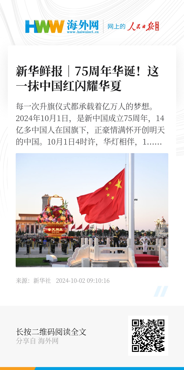 每一次升旗仪式都承载着亿万人的梦想。2024年10月1日,是新中国成立75周年,14亿多中国人在国旗下,正豪情满怀开创明天的中国。