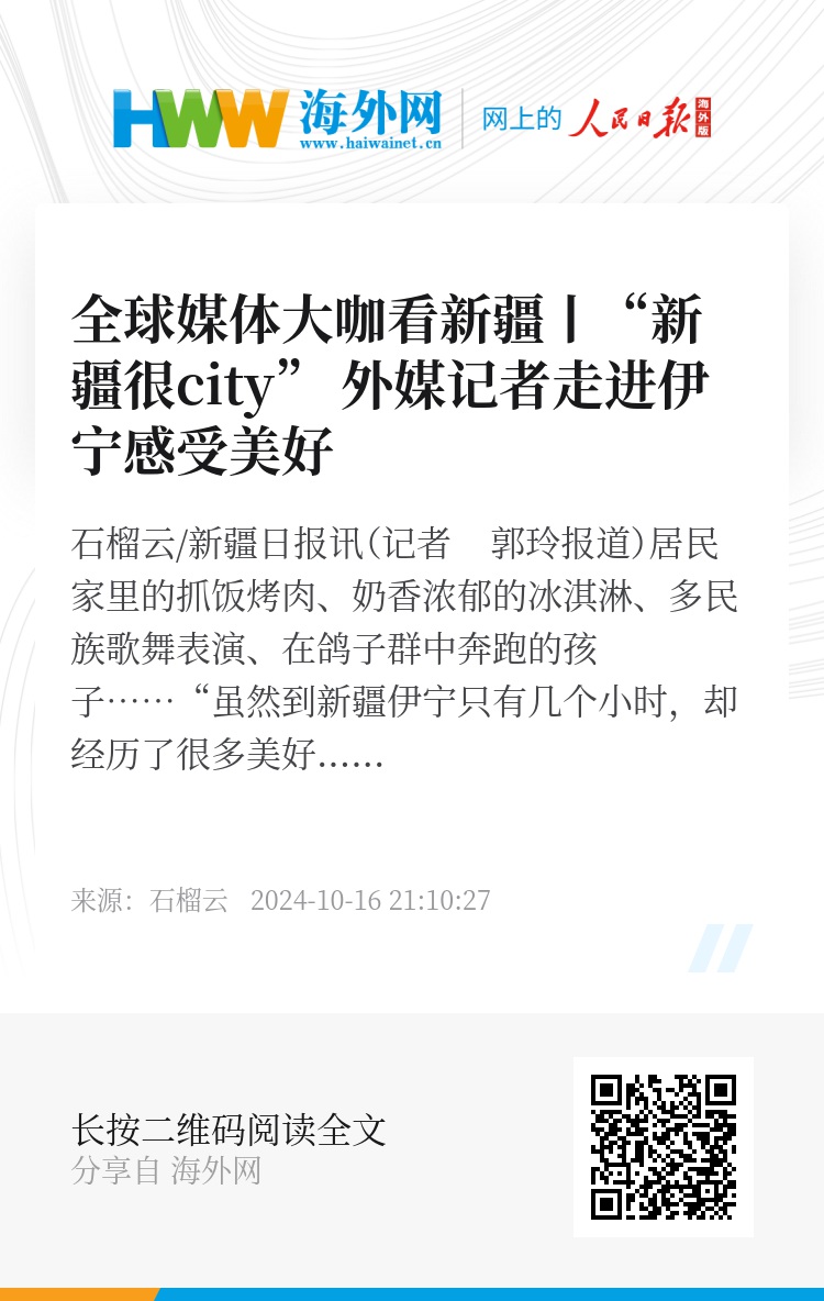 石榴云/新疆日报讯(记者 郭玲报道)居民家里的抓饭烤肉、奶香浓郁的冰淇淋、多民族歌舞表演、在鸽子群中奔跑的孩子……“虽然到新疆伊宁只有几个小时,却经历了很多美好。”结束伊宁市的行程,卡塔尔半岛报国内报道部主任赛义德·伊尔凡感慨道。
