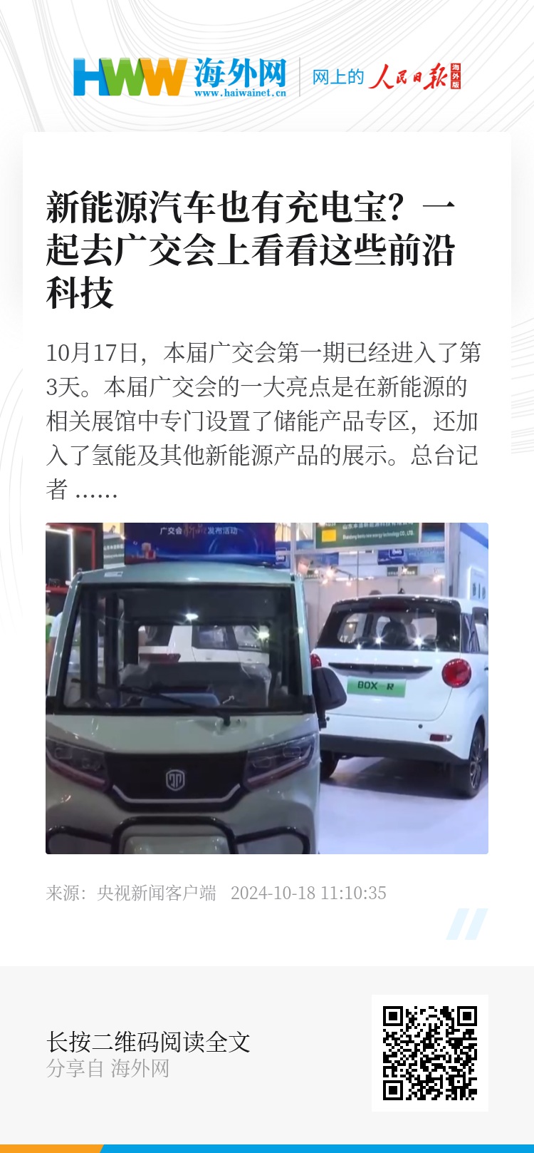 10月17日,本届广交会第一期已经进入了第3天。本届广交会的一大亮点是在新能源的相关展馆中专门设置了储能产品专区,还加入了氢能及其他新能源产品的展示。