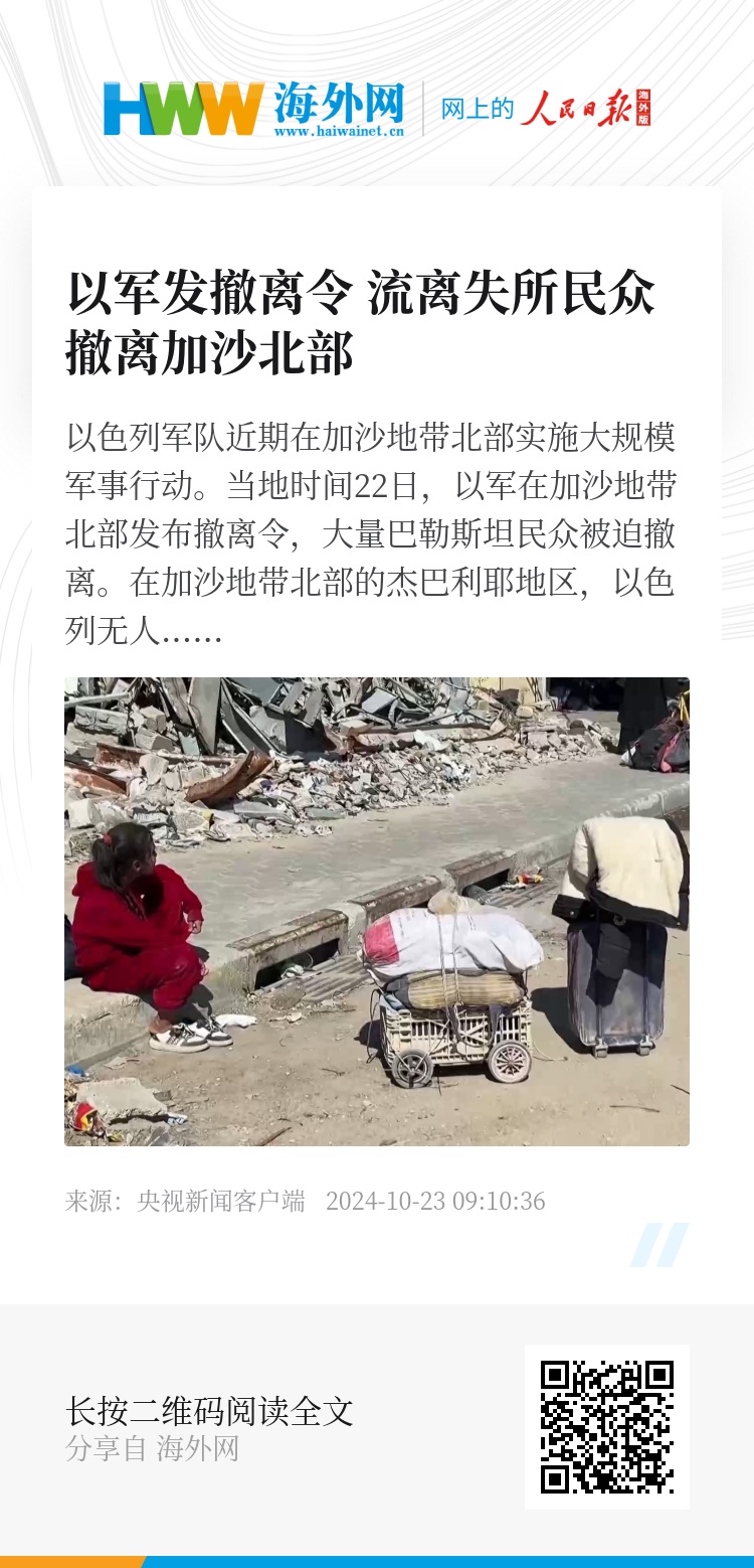以色列军队近期在加沙地带北部实施大规模军事行动。当地时间22日,以军在加沙地带北部发布撤离令,大量巴勒斯坦民众被迫撤离。
