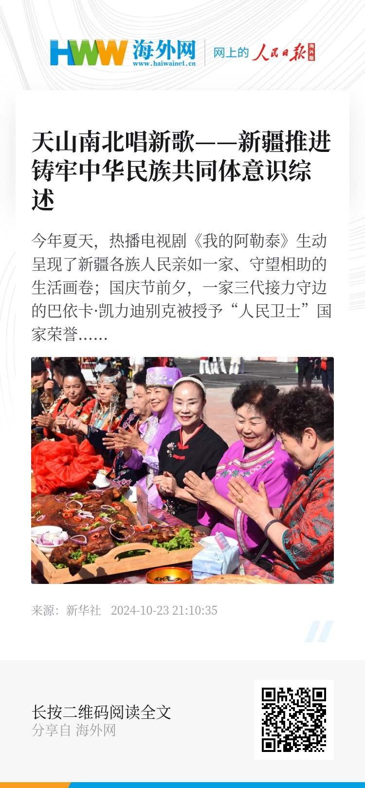 山河无言,岁月有声。新疆以铸牢中华民族共同体意识为主线,2500多万各族儿女安居乐业、团结奋进、自信开放,携手唱响中华民族共同体的时代新歌。