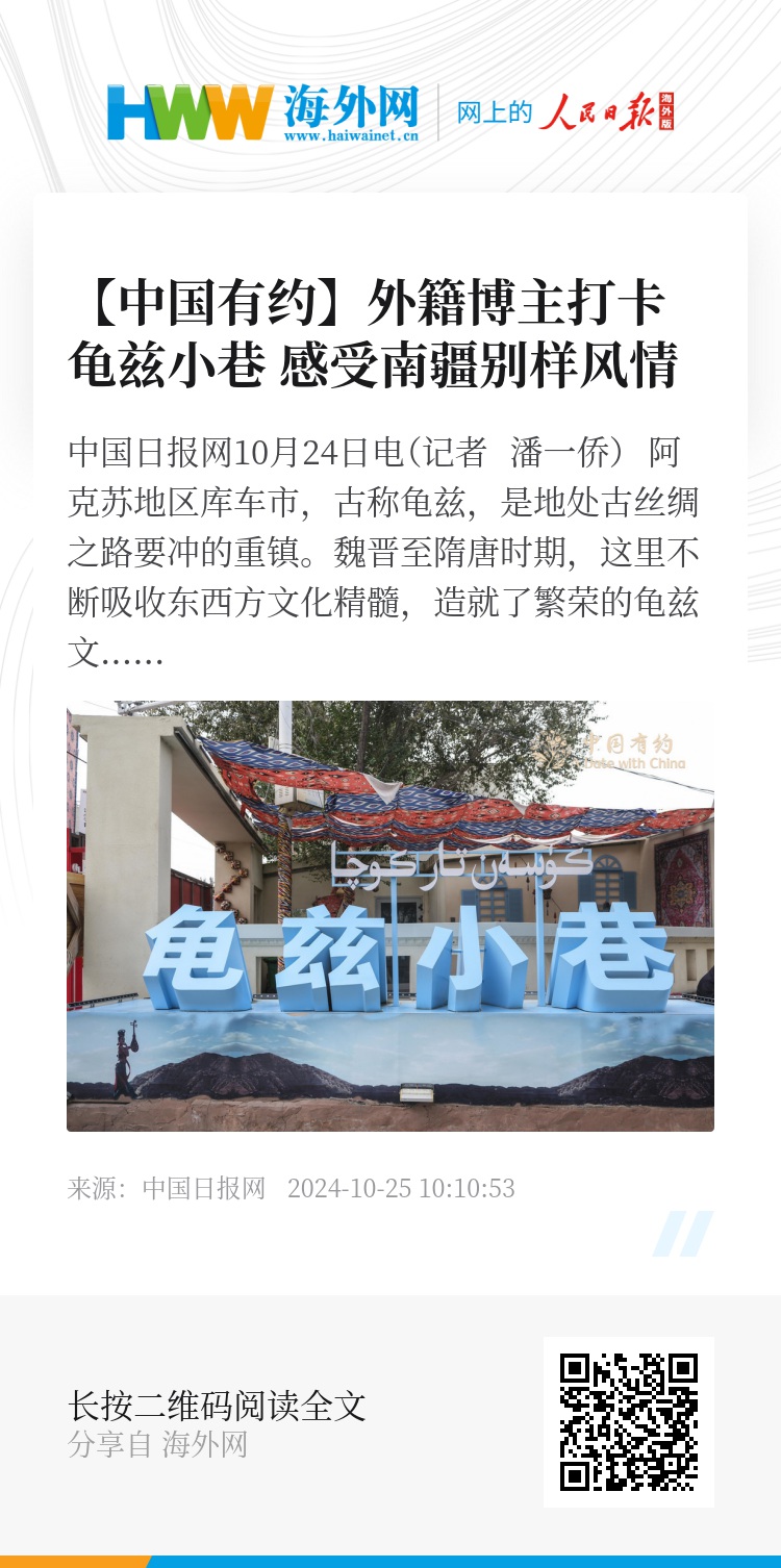 10月24日,“中国有约·相约新疆”2024年国际媒体采访团来到龟兹小巷,这里是库车历史文化名城的核心区。