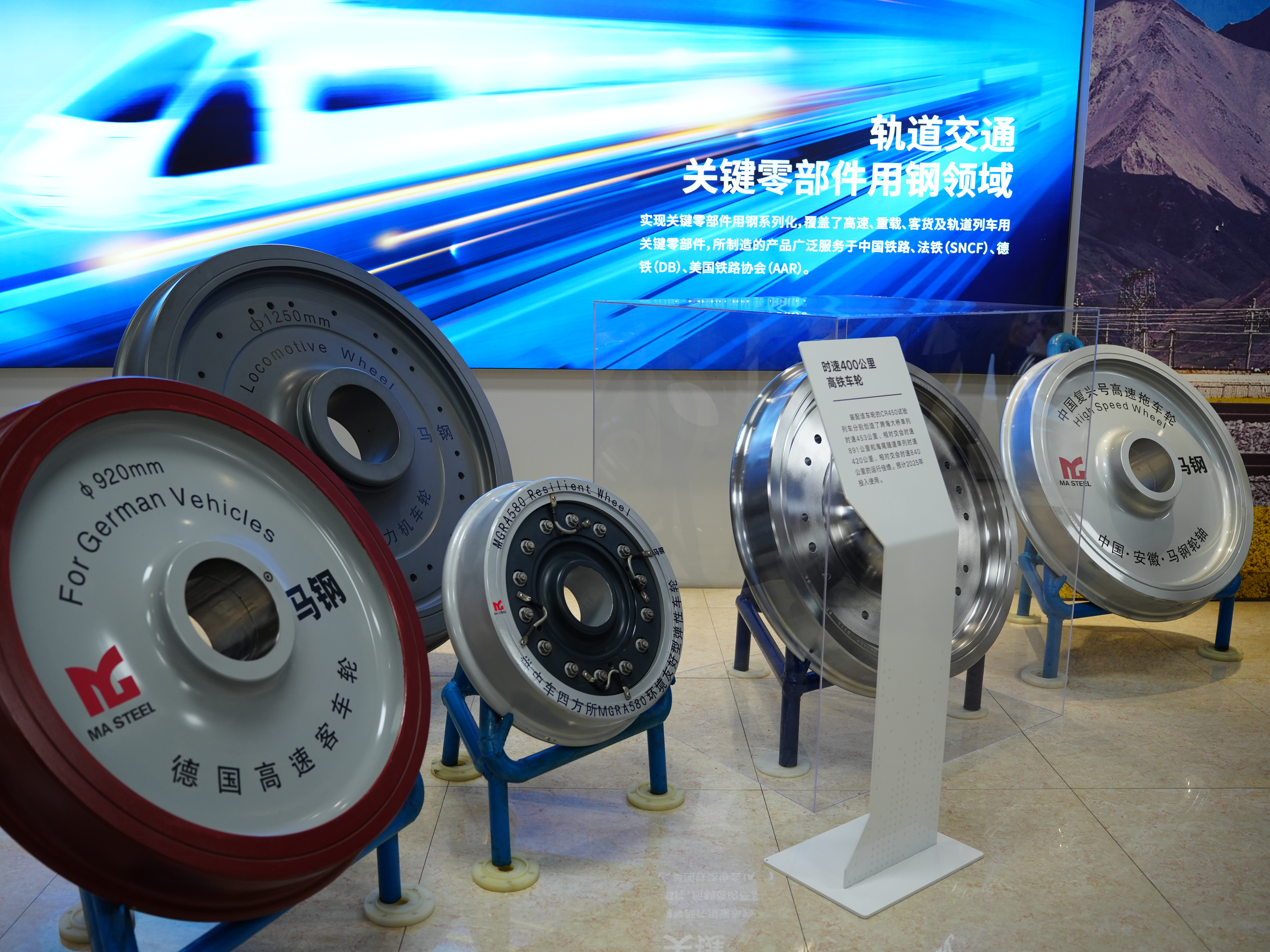 地铁用的弹性车轮、出口德国的货车轮对、东风内燃机车轮箍……走进位于安徽省马鞍山市的宝武集团马钢轨交材料科技有限公司(以下简称“马钢交材”)的展示馆,一件件精美的轮轴产品让人目不暇接,诉说着这家钢铁企业在中国车轮发展史上的辉煌。
