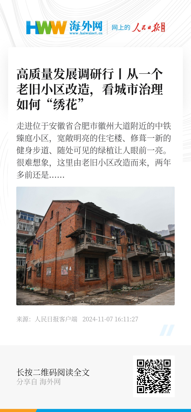 走进位于安徽省合肥市徽州大道附近的中铁臻庭小区,宽敞明亮的住宅楼、修葺一新的健身步道、随处可见的绿植让人眼前一亮。很难想象,这里由老旧小区改造而来,两年多前还是一片破败陈旧、拥挤杂乱的光景。
