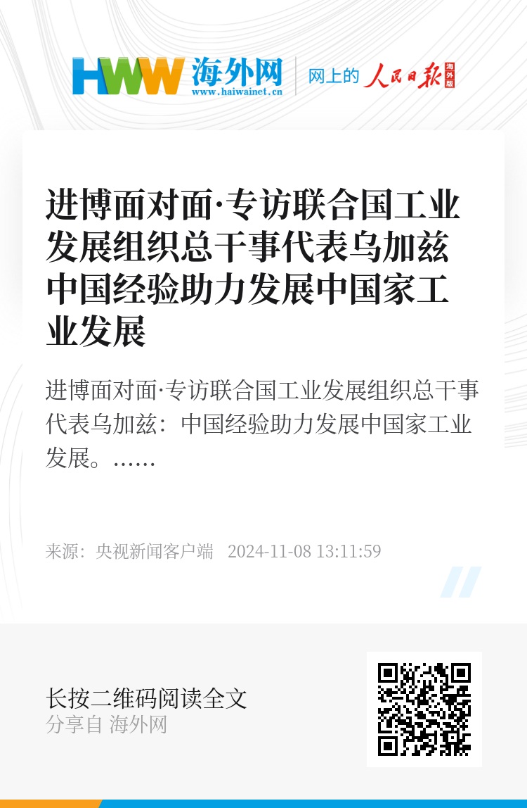 进博面对面·专访联合国工业发展组织总干事代表乌加兹:中国经验助力发展中国家工业发展。