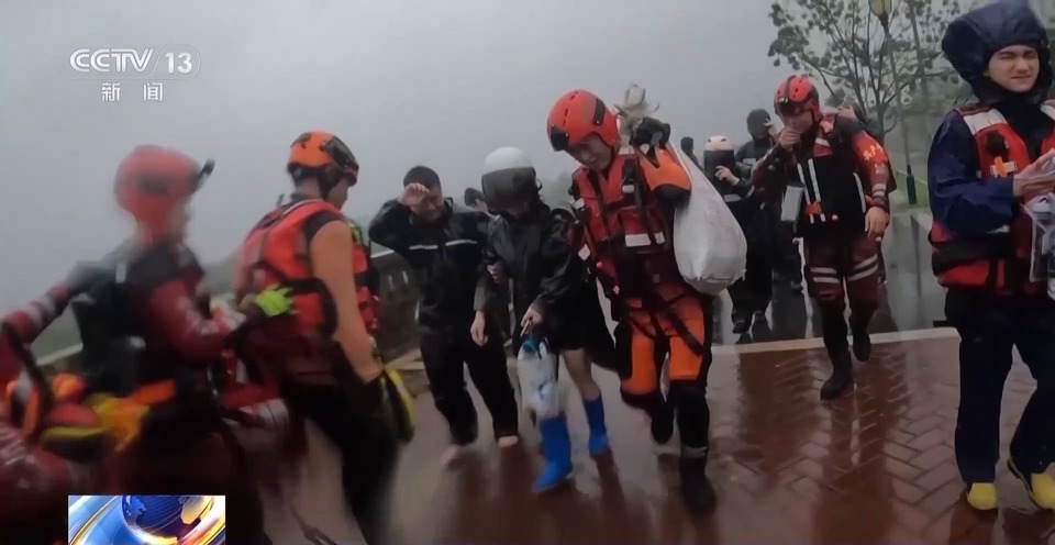 眼看越来越近,两名村民一把将他拉上阳台。在帮群众穿戴好防护装备后,彭彪和队友们合力利用绳索,协助村民依次横渡。