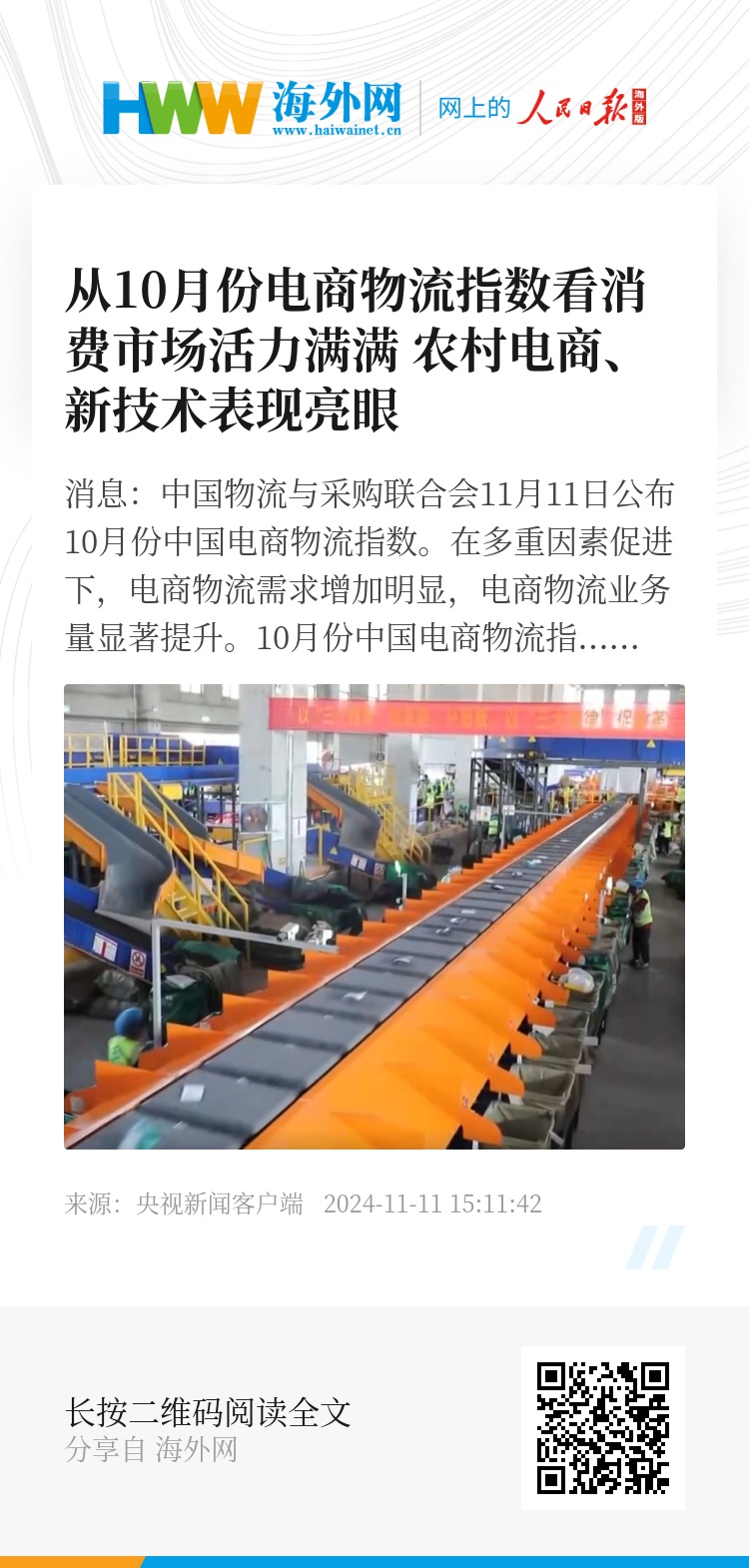 中国物流信息中心主任刘宇航表示,10月份中国电商物流指数呈现了小幅回升的状态,电商物流需求稳步回升,特别是在“两新”政策下,围绕着家电、服装和日常消费品消费补贴力度的加大,也激发了消费者电商消费的活力。